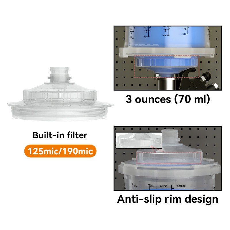 -Says3.1 pihustuspulga kaas on topeltkihiline konstruktsioon, mis mahutab filtri all kuni 3 untsi värvi. Kaas parandab värvivoolu ja konsistentsi, vähendades samal ajal pritsimist algusest lõpuni.