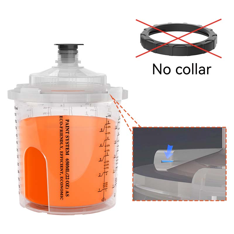 Krae ,, mis moodustab tassi ja kaane vahel tiheda ühenduse, on juba pikka aega olnud ühekordselt kasutatavate pihustussitasside süsteemides ülioluline komponent. Hõivatud maalimisseansside ajal kaotavad maalikunstnikud sageli kaelarihma, takistades ühekordselt kasutatava pihusti tassi korralikult toimimist, luues olulisi väljakutseid.