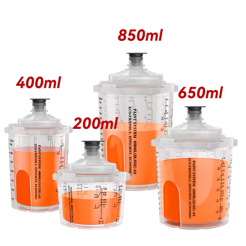 - Ays3.1ühekordselt kasutatav pihusti tasson valmistatud lahustiresistentsest ja löögikindlast PP-st ja PE-materjalidest. See toetab laias valikus katteid, sealhulgas lateksvärv, õlipõhine värv ja lakk, kõrvaldades tõhusalt korrosiooniprobleemid, mis on tavaliselt seotud traditsiooniliste pihustusproovidega.