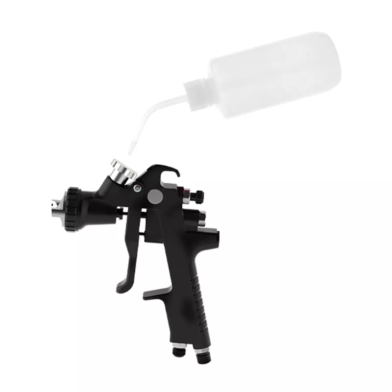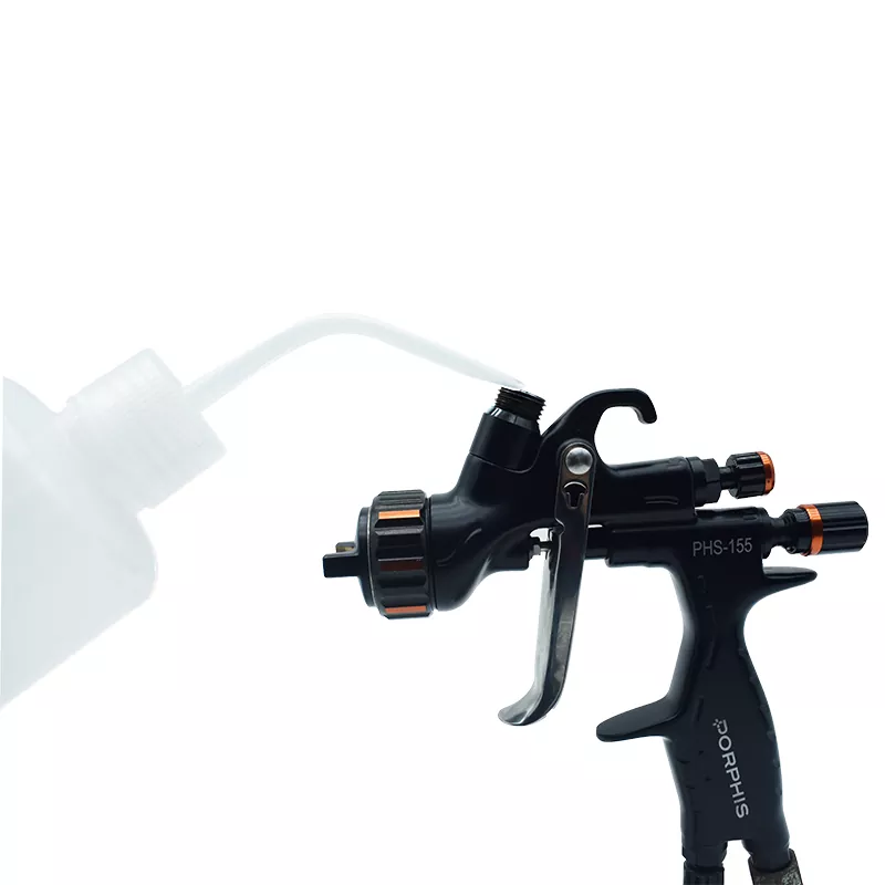 Pihustuspüstolite puhastuspudeli ainulaadne kõverjooneline otsik suudab jääkvärvi kiiresti pihustuspüstoli sisemuses asuvates lünkades loputada, mis võib tõhusalt ära hoida värvi kuivamise põhjustatud ummistusi, pikendada pihustuspüstoli kasutusaega ja minimeerida pihustuspüstoli puhastamise aega.